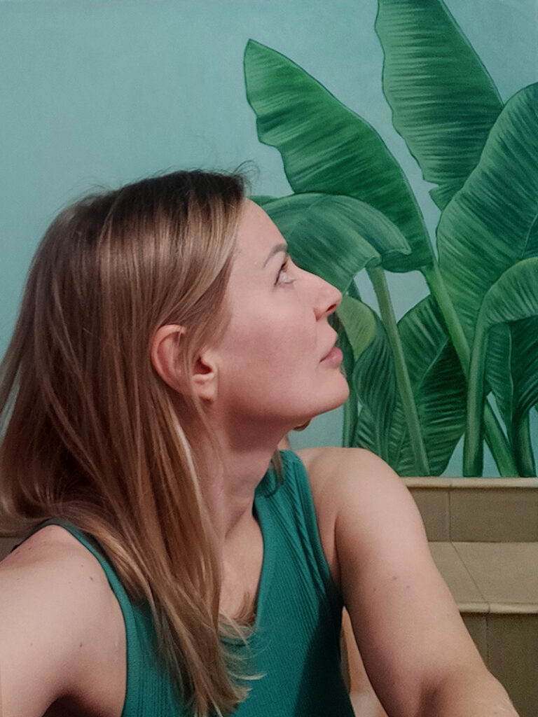 Grafik z wykształcenia, intuicyjnie tworzy graficzne prace, minimalistyczne w kompozycji. Preferuje wyraźnie zdefiniowane kształty, lubi doszukiwać się zależności geometrycznych w malowanych przedstawieniach.